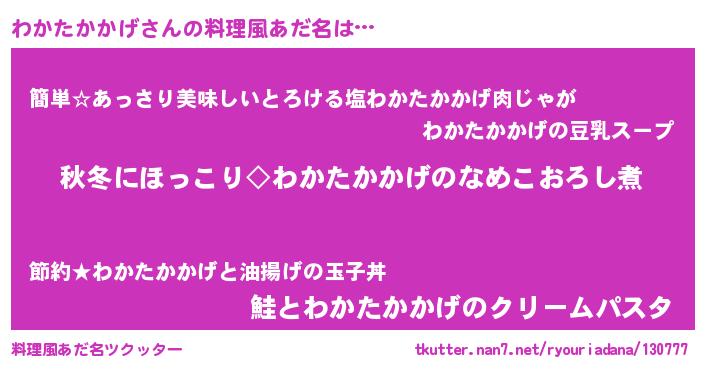 | 男性向けラノベタイトル風あだ名 | 『わかたかかげに滅ぼされるだけの簡単なお仕事です』 |