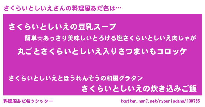 | 男性向けラノベタイトル風あだ名 | 『この素晴らしい世界にさくらいとしいえを!』 |