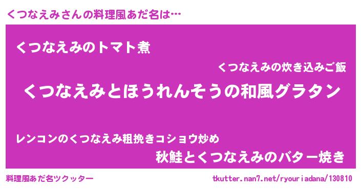 | ヘコむあだ名 | 『くつなえみ(笑)』『くつにー』 |