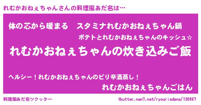 | ヒーロー風カッコイイあだ名 | 『ウルトラれむかおねぇちゃんマン』 |