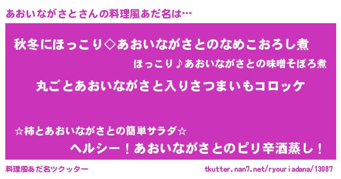| ヘコむあだ名 | 『あおっふぃ~』『あおいながさと(笑)』 |