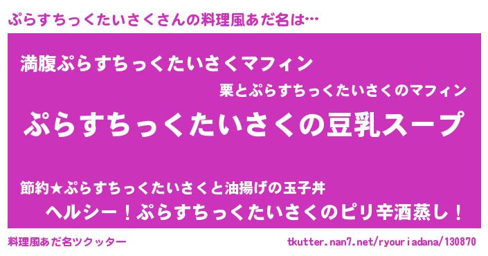 | 女子向けラノベタイトル風あだ名 | 『ぷらすちっくたいさくは平凡を望む』 |