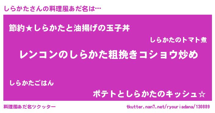 | 意味不明あだ名 | 『自称しらかた』『ペロリンしらかた』 |