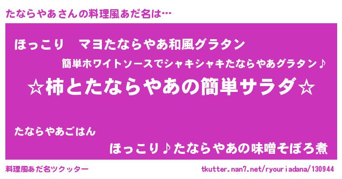 | 男性向けラノベタイトル風あだ名 | 『緋弾のタナラヤア』『たならやあの憂鬱』 |