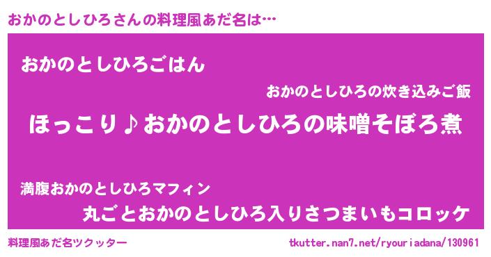 | ヘコむあだ名 | 『おかもー』『おかのとしひろ(震え声)』 |
