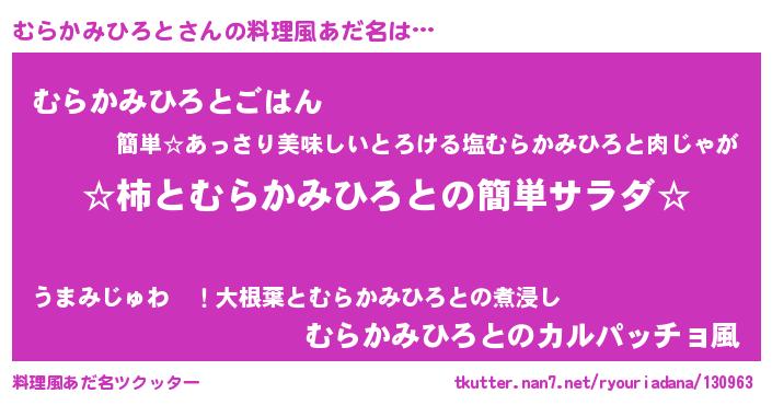 | ヒーロー風カッコイイあだ名 | 『仮面ムラダー』『ネオムラカミヒロト』 |