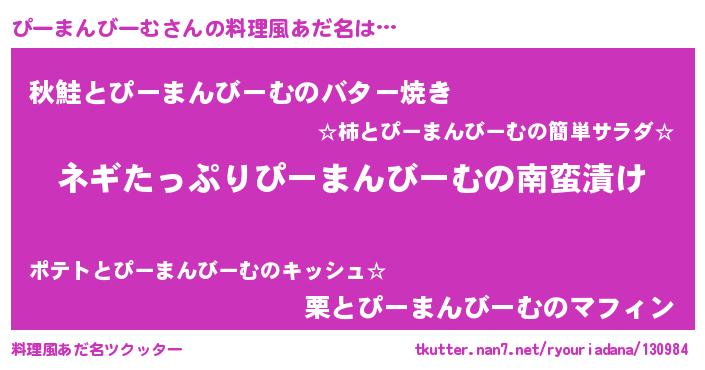| ヘコむあだ名 | 『ぴーふぇ~』『ぴーまんびーむ(遠い目)』 |