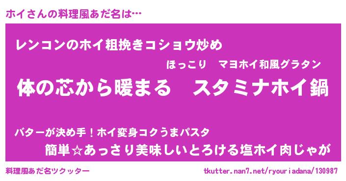 | ヘコむあだ名 | 『つくし』『ホイ(笑)』『ホイっ子』 |