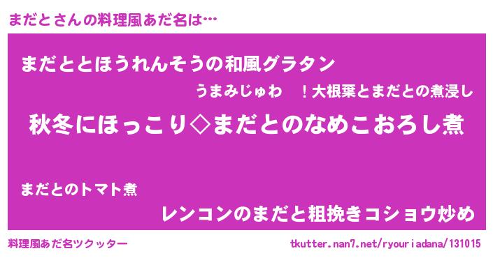 | ヘコむあだ名 | 『なまこ酢』『まだと(小並感)』 |
