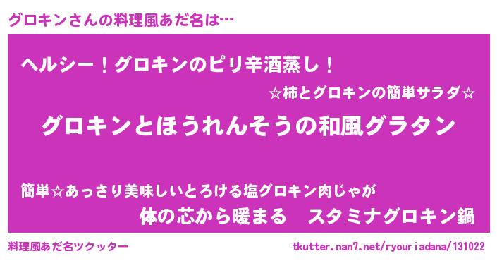 | 男性向けラノベタイトル風あだ名 | 『転生したらグロキンだった件』 |