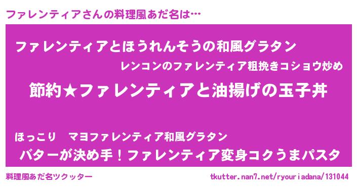 | 男性向けラノベタイトル風あだ名 | 『ファレンティアの憂鬱』 |