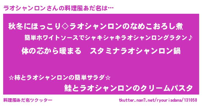 | 女子向けラノベタイトル風あだ名 | 『ラオシャンロンの雑貨屋さん』 |