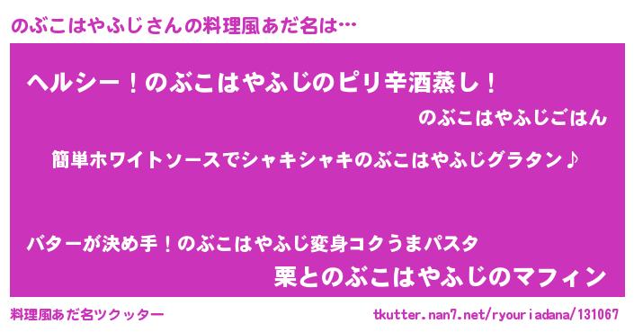 | 男性向けラノベタイトル風あだ名 | 『のぶこはやふじの嫁は女の子じゃないと思った?』 |