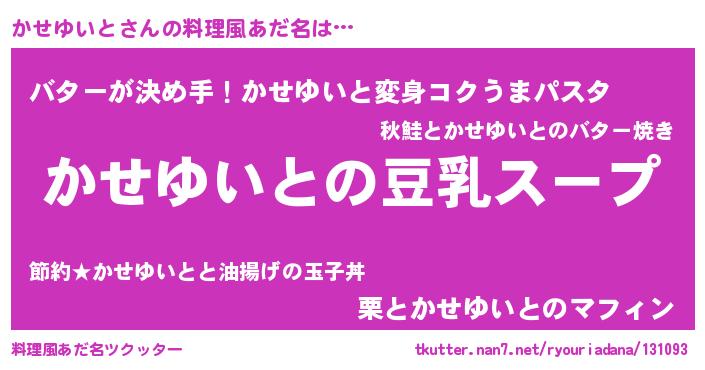 | 胡散臭い通販商品みたいなあだ名 | 『信頼と実績のサプリメント…その名も「かせゆいと」』 |