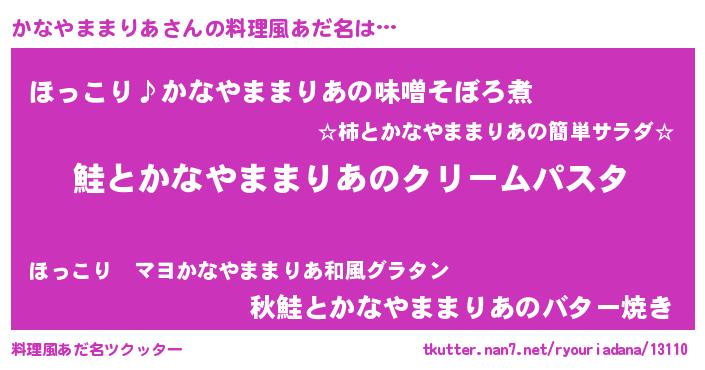 | ヘコむあだ名 | 『かなふぇ~』『かなやままりあ(笑)』 |