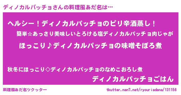 | 女子向けラノベタイトル風あだ名 | 『(仮)ディノカルパッチョのやんごとなき事情』 |