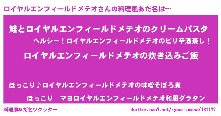 | 意味不明あだ名 | 『眠気覚ましガムロイヤルエンフィールドメテオ味』 |