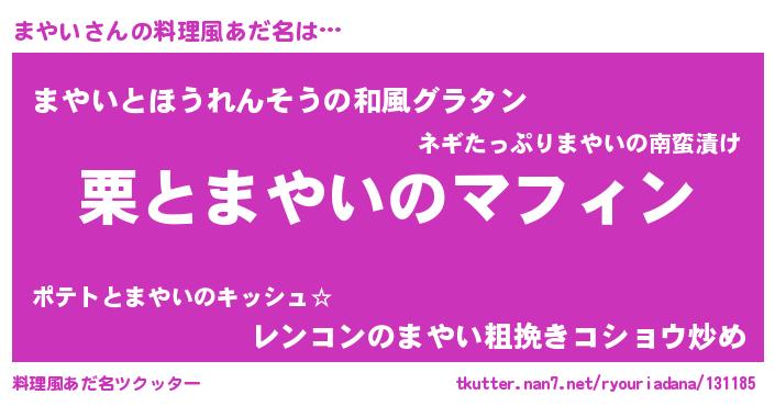 | ヘコむあだ名 | 『まやっふぃ~』『まやお』『豆乳』 |