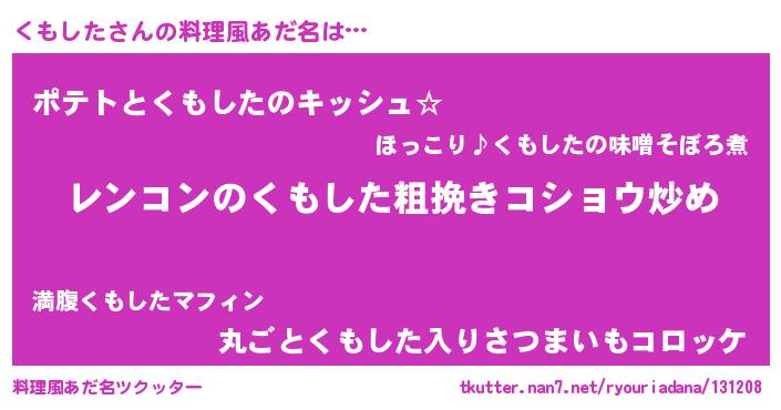 | ヘコむあだ名 | 『くも太郎』『くもっふぃ~』 |