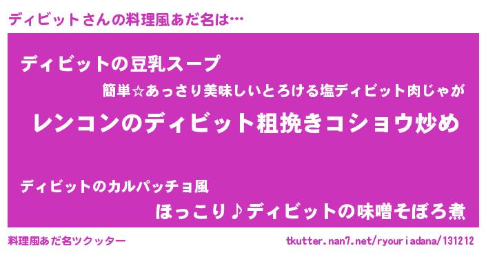 | ヘコむあだ名 | 『ディぷりん』『ディもー』 |