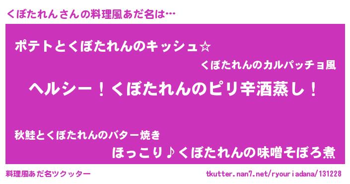 | 男性向けラノベタイトル風あだ名 | 『Re:くぼたれんから始める異世界生活』 |