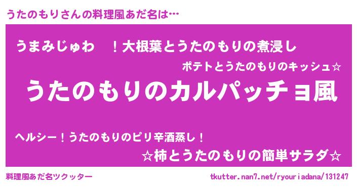 | 意味不明あだ名 | 『住所不定無職うたのもり(41歳)』 |