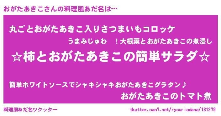 | 意味不明あだ名 | 『住所不定無職おがたあきこ(77歳)』 |