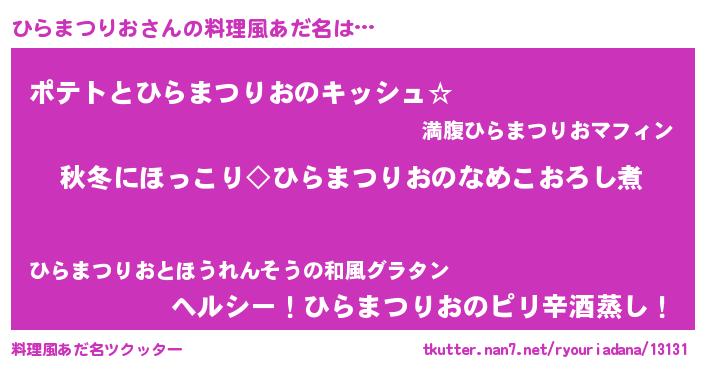 | ポケモン風あだ名 | 『ヒラゴンZ』『ヒヒラマツリオ』 |