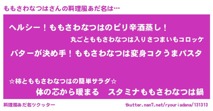 | ヘコむあだ名 | 『豆乳』『ももさわなつは(爆)』 |