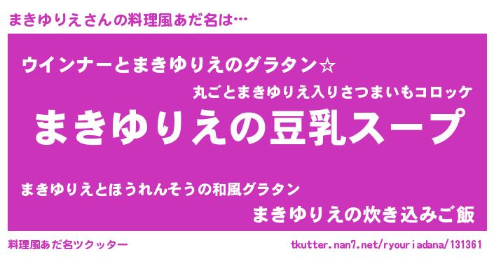 | 胡散臭い通販商品みたいなあだ名 | 『信頼と実績のサプリメント…その名も「まきゆりえ」』 |