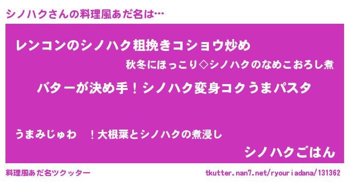 | ヘコむあだ名 | 『豆乳』『シノぷりん』『シノにゅー』 |