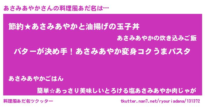 | ヘコむあだ名 | 『あさにゅー』『あさみあやか(苦笑)』 |