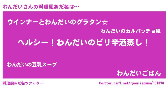 | 意味不明あだ名 | 『自称わんだい』『わんだいフォーエバー』 |