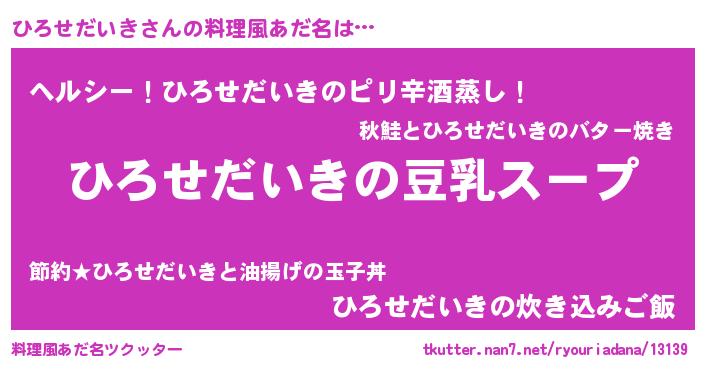 | 男性向けラノベタイトル風あだ名 | 『ダンジョンにひろせだいきを求めるのは間違っているだろうか』 |