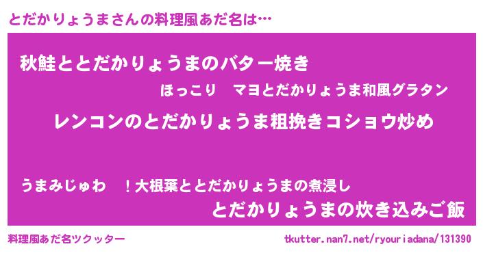 | 胡散臭い通販商品みたいなあだ名 | 『テレビで話題の高麗人参…その名も「とだかりょうま」』 |