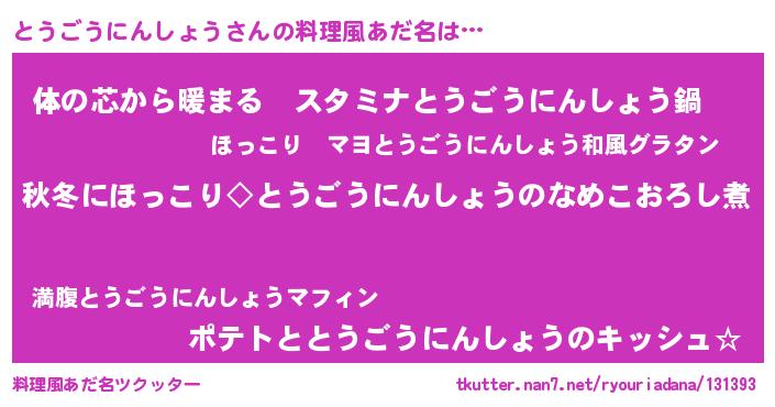 | ヘコむあだ名 | 『なまこ酢』『とうお』『とうもー』 |