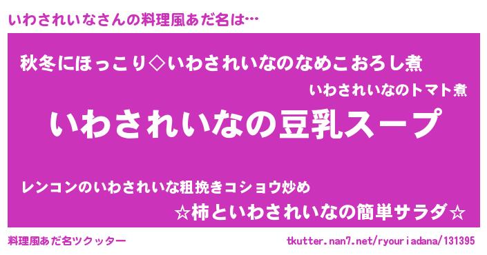 | 胡散臭い通販商品みたいなあだ名 | 『信頼と実績のサプリメント…その名も「いわされいな」』 |