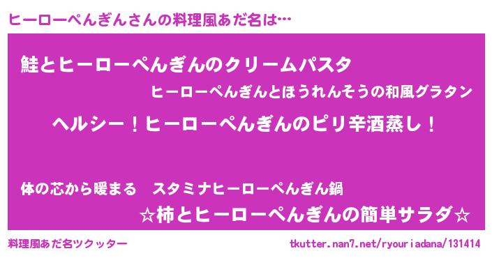 | 男性向けラノベタイトル風あだ名 | 『Re:ヒーローぺんぎんから始める異世界生活』 |