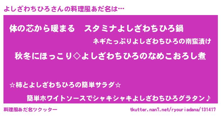 | ポケモン風あだ名 | 『ヨシゴンZ』『ヨシザダネ』 |