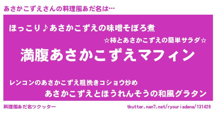 | 意味不明あだ名 | 『永久保存あさかこずえ』 |