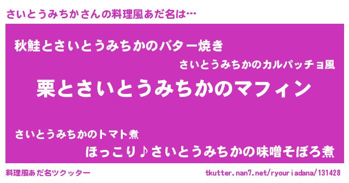 | ヘコむあだ名 | 『さいとうみちか(笑)』『さいにゅー』 |