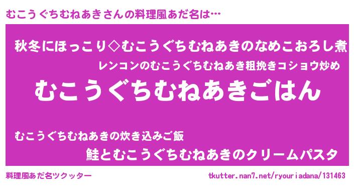 | ヘコむあだ名 | 『むこっぺ』『なまこ酢』 |