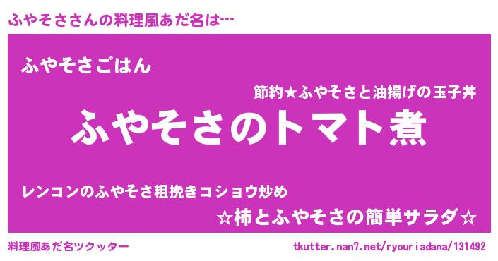 | ヘコむあだ名 | 『ふやにー』『牛乳』『ふやぷりん』 |