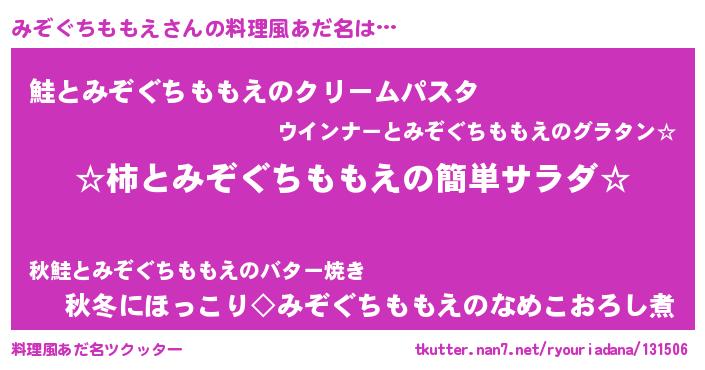 | 意味不明あだ名 | 『眠気覚ましガムみぞぐちももえ味』 |