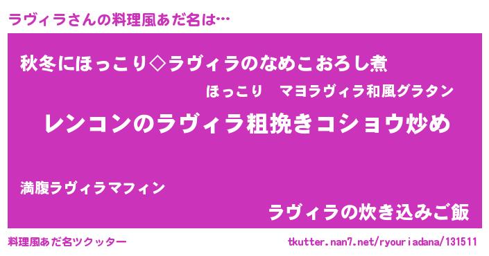 | 意味不明あだ名 | 『自称ラヴィラ』『永久保存ラヴィラ』 |