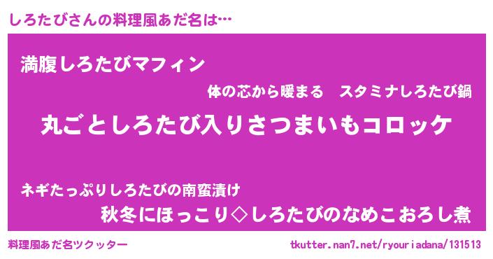 | ヘコむあだ名 | 『しろたび(笑)』『牛乳』『しろを』 |