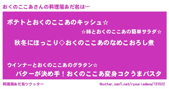 | 意味不明あだ名 | 『とにかく怪しいおくのここあ』 |