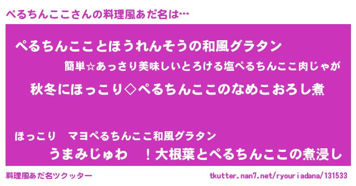 | ヘコむあだ名 | 『酢こんぶ』『ぺるちんここ(笑)』 |