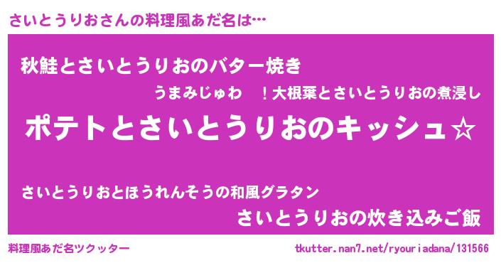| 男性向けラノベタイトル風あだ名 | 『さいとうりおの嫁は女の子じゃないと思った?』 |