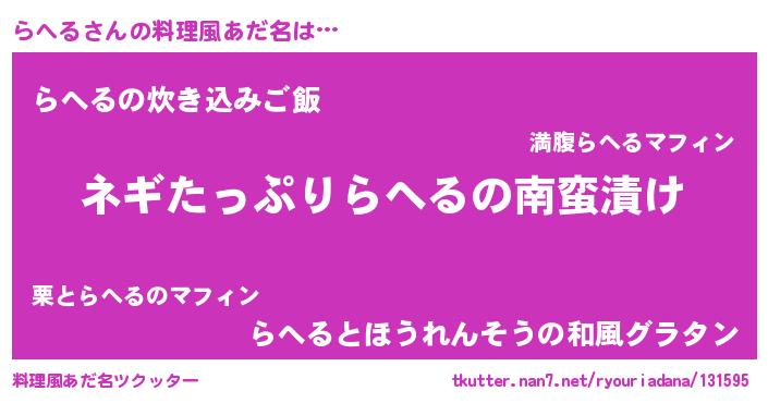 | 男性向けラノベタイトル風あだ名 | 『ラヘルアートオンライン』 |